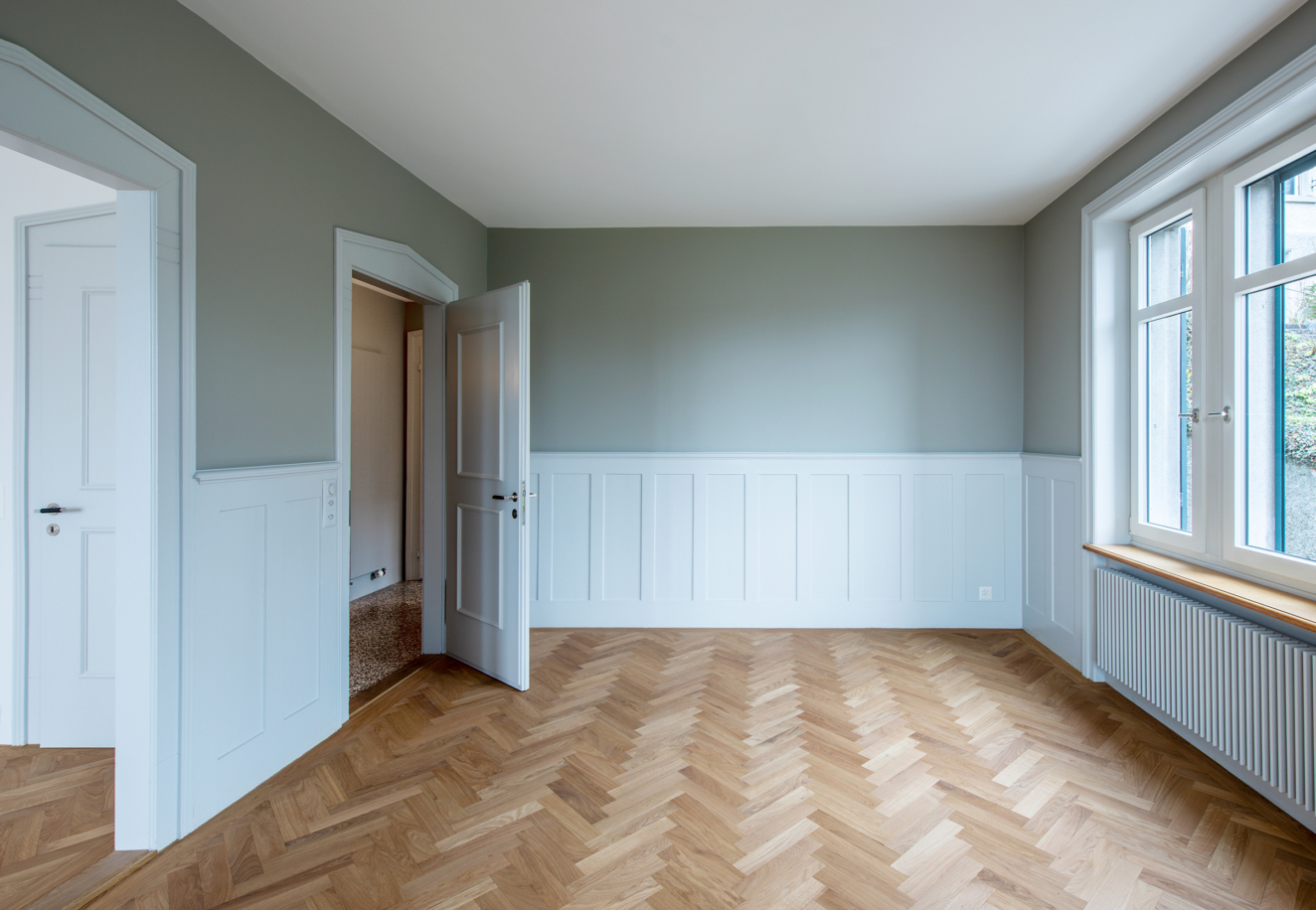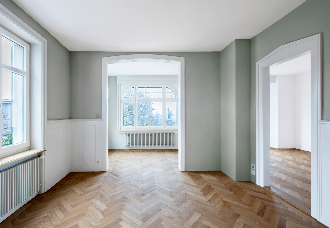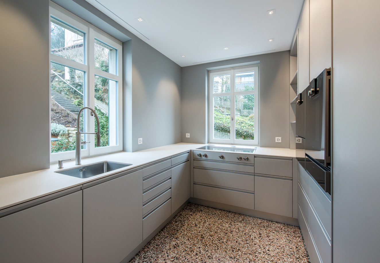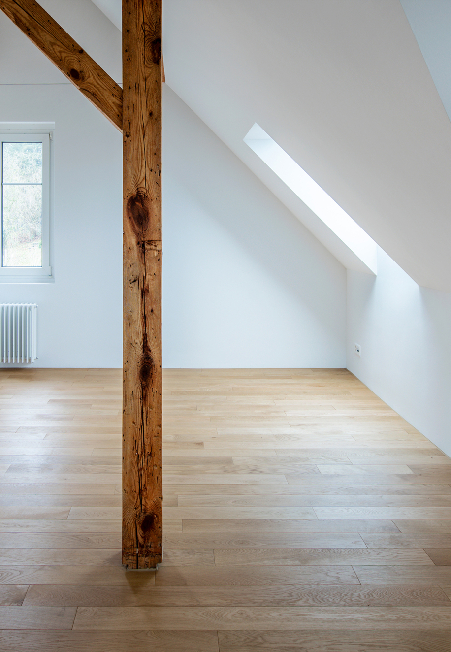 Das sorgfältig materialisierte Wohnhaus wurde sanft renoviert. Der wunderschöne Terrazzoboden im Eingangsbereich wurde instandgestellt und die Oberflächen im gesamten Haus aufgefrischt. Der ehemalige Estrich wurde ausgebaut. Er bietet nun Platz für 2 zusätzliche Kinderzimmer.