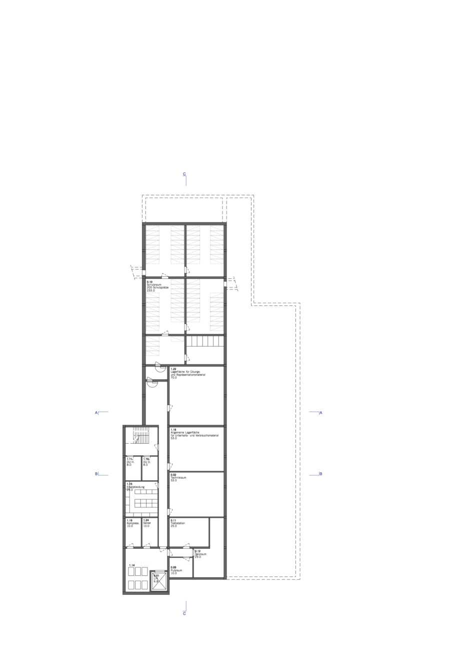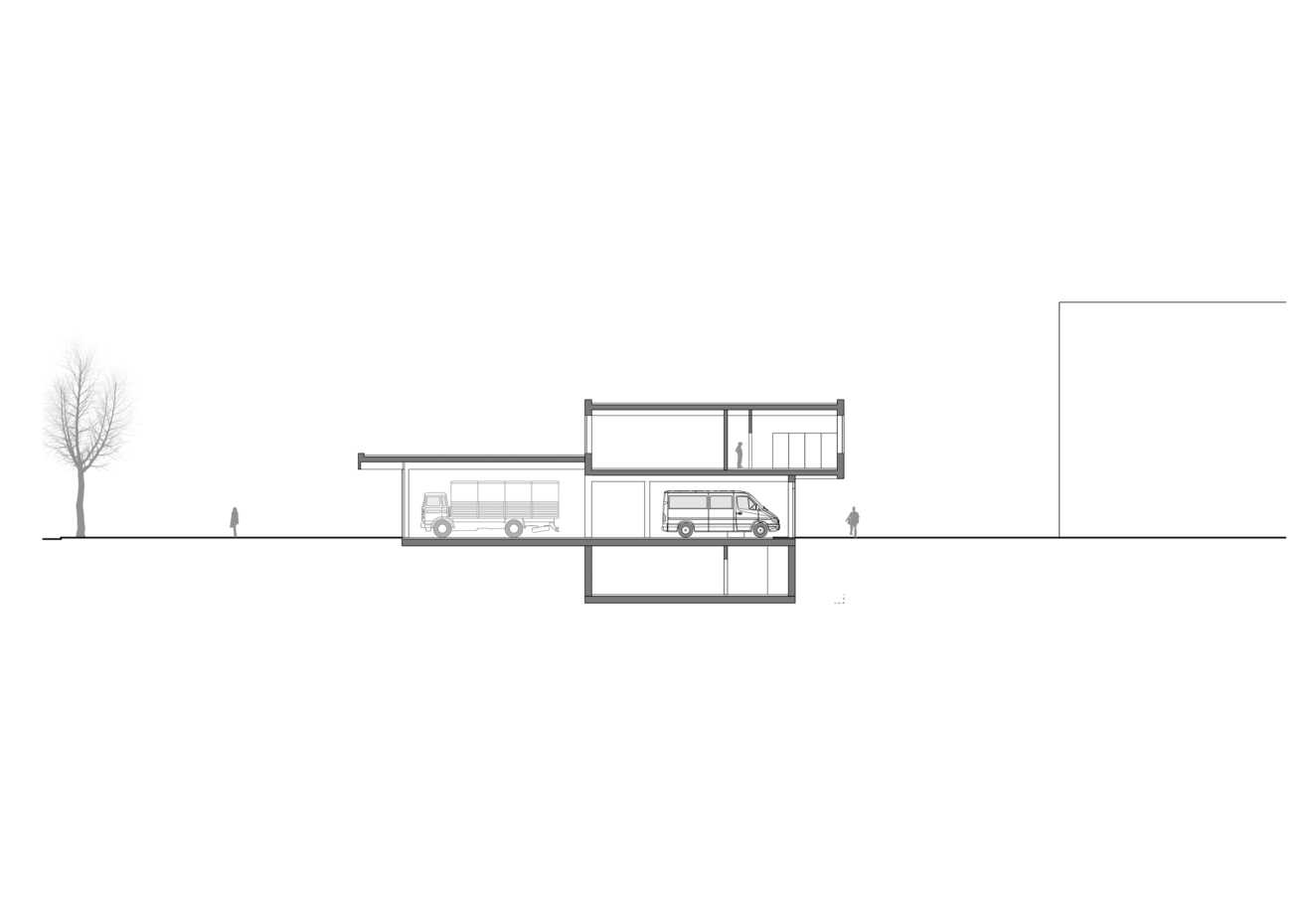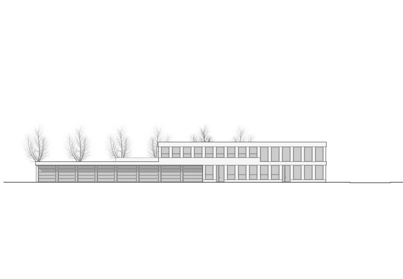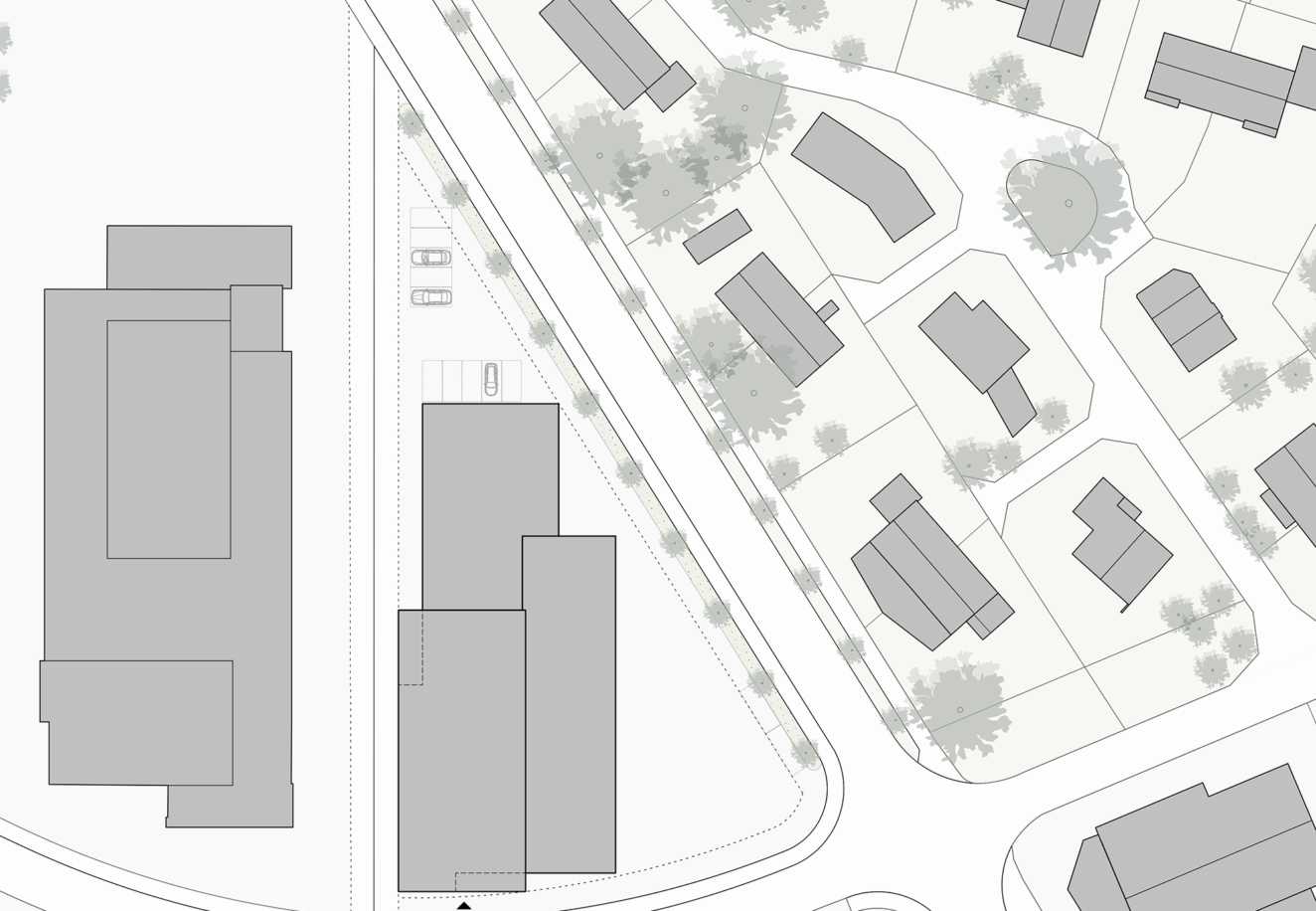 Im neuen Sicherheitszentrum an der Gaswerkstrasse sollen die Feuerwehr, der Rettungsdienst und der Samariterverein untergebracht werden. Die dreieckige Parzelle mit guter Anbindung an die verkehrsreiche Lagerstrasse – an der Nahtstelle zwischen Industriebauten und Wohnquartieren – ist prädestiniert für ein öffentliches Gebäude. Der Neubau orientiert sich am bestehenden Depot und zeichnet den Verlauf des ehemaligen Industriegleises nach. Durch sein Abdrehen gegenüber der Lagerstrasse wird auf der Südostseite Freiraum geschaffen.